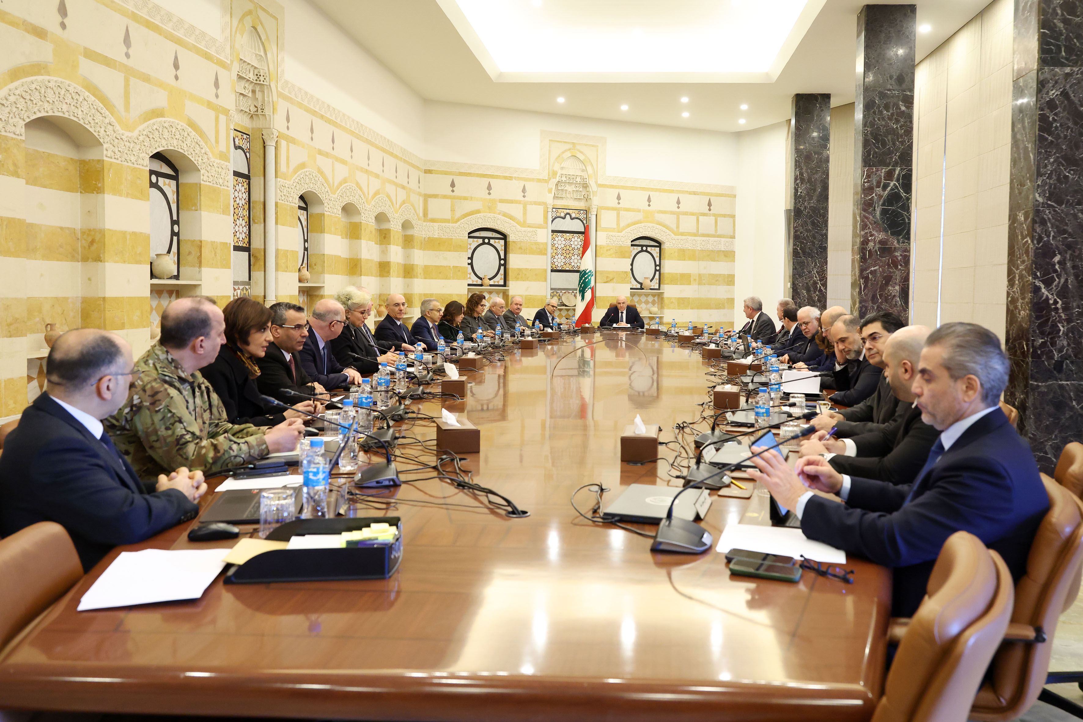 يؤشّر قيام الرئيس نواف سلام بتلاوة مقرّرات جلسة مجلس الوزراء والتي تضمّنت، إلى جانب تفويض القوات المسلحة باستخدام جميع الوسائل الكفيلة بضمان التنفيذ في التعامل مع حزب الله، إعلان الإستعداد الكامل لاستئناف المفاوضات بمشاركة مدنية وبرعاية دولية إلى توجّه حاسم لتجاوز «فوبيا السلاح» إنطلاقاً من كونه واجباً وطنياً تفرضه المصلحة العليا ويكرّسه الدستور - وتجاوز «فوبيا المفاوضات» بما يعكس إدراكاً بأن الانخراط في مسار تفاوضي لا يشكّل تنازلاً عن مكتسبات وطنية، بل تأكيداً على تثبيت حدود لبنان الدولية كما ترعاها اتّفاقية الهدنة، وترسيخاً لمرجعية الدولة في إدارة الصراع.