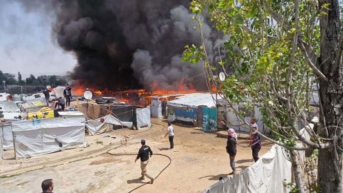وأمس اندلع، حريق ضخم داخل مخيم للنازحين السوريين في زحلة قرب مجمع الرحاب، حيث توجهت فرق الدفاع المدني من كافة المراكز لتقديم المساندة والدعم لإخماد الحريق.