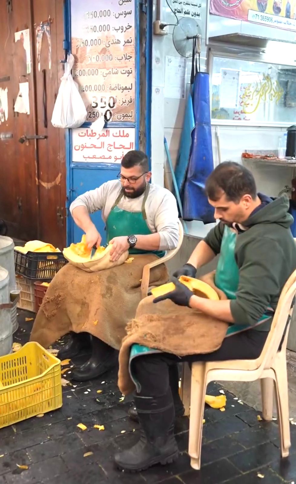 في أحد أحياء صيدا القديمة، يعمل المعلم عمر أرناؤوط مع شقيقه خالد، مستعيدَين حرفة تعلّماها من والدهما الحاج محمود، حيث تبدأ الرحلة من قطاف اليقطين في الربيع، وتخزينه أشهرًا، قبل أن يُقشَّر ويُبرَش ويُنقَع بماء الكلس، ثم يُطهى على نار قوية مع القطر وماء الزهر، حتى يبلغ القوام والنكهة اللذين يعرفهما الصيداويون جيدًا.
