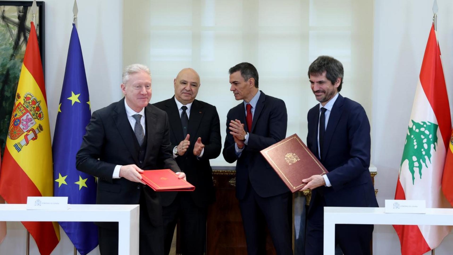وكان الرئيس عون قد وقّع على كلمة في السجل الذهبي لرئاسة الحكومة الإسبانية وبعد انتهاء المحادثات جرى التوقيع على 3 مذكرات تفاهم بين الطرفين وقعها عن الجانب اللبناني وزير الخارجية يوسف رجي بحضور الرئيس عون والرئيس سانشيز، وهي:
