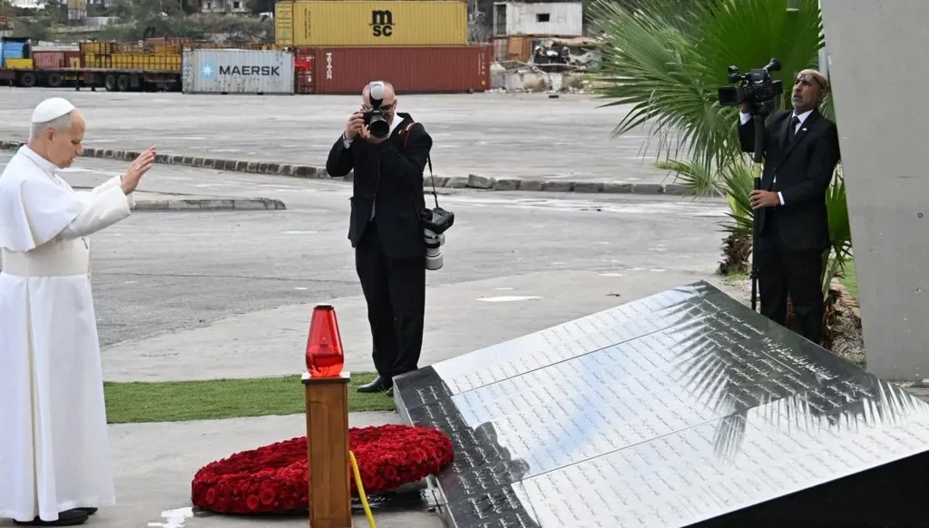 وصل البابا لاوون الرابع عشر الى موقع الانفجار في مرفأ بيروت، حيث اقام صلاةً صامتة، على ان يترأس الاحتفال بالقداس الإلهي على الواجهة البحرية لبيروت ويلقي عظة خاصة. وكان في استقباله رئيس الحكومة نواف سلام.