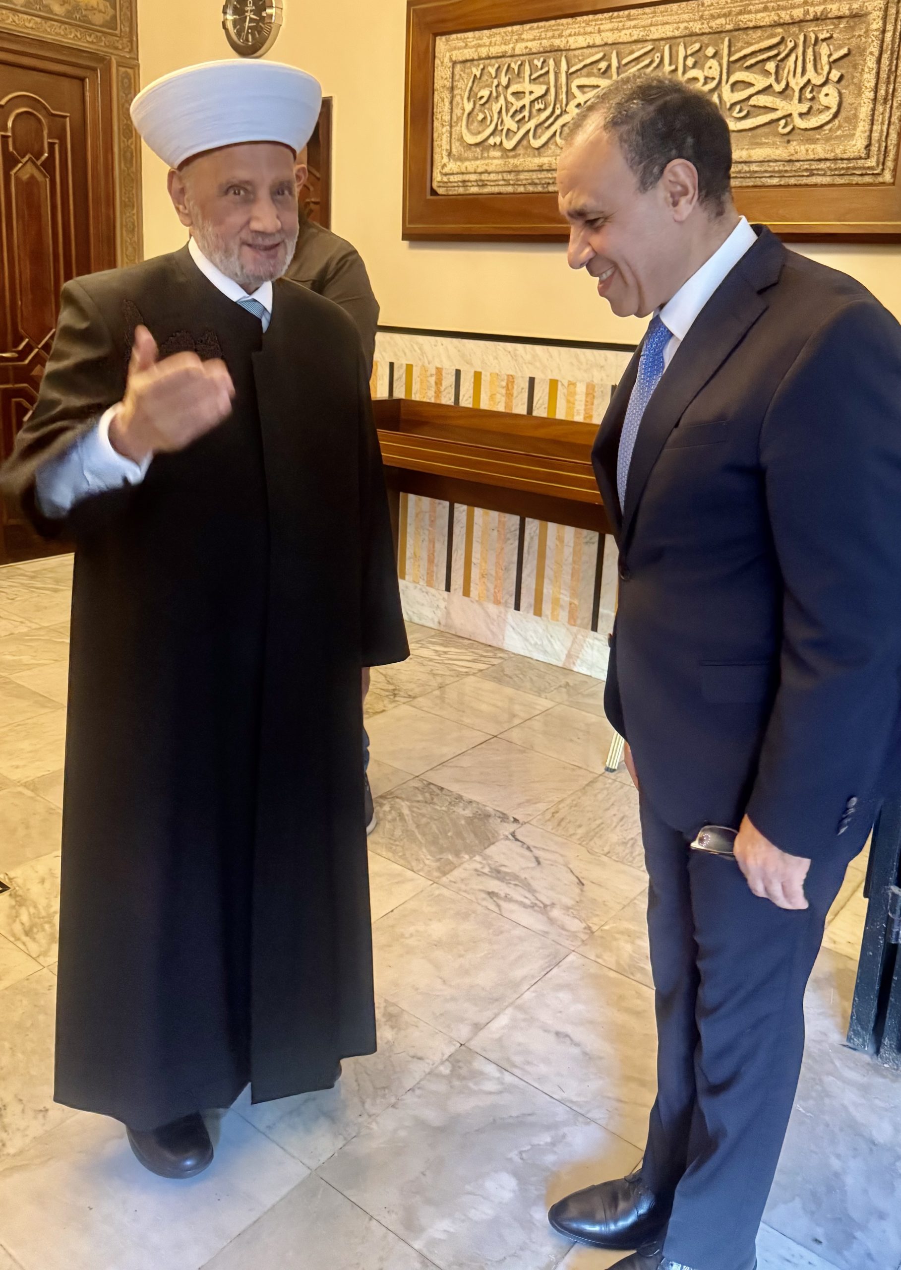 وزار عبد العاطي والوفد المرافق، مفتي الجمهورية اللبنانية الشيخ عبد اللطيف دريان في دار الفتوى، يرافقه سفير مصر في لبنان ونائب السفير الوزير المفوض محمود حمدي، وأحمد أبو النجا وهبة صبري.