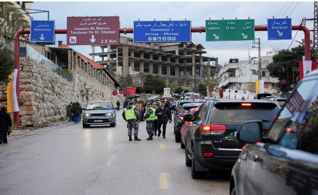 رغم الأمطار احتشد المؤمنون من الصباح الباكر الى جانب الطرق التي سيسلكها الحبر الاعظم البابا لاوون الرابع عشر متجهًا الى دير مار شربل في عنايا.