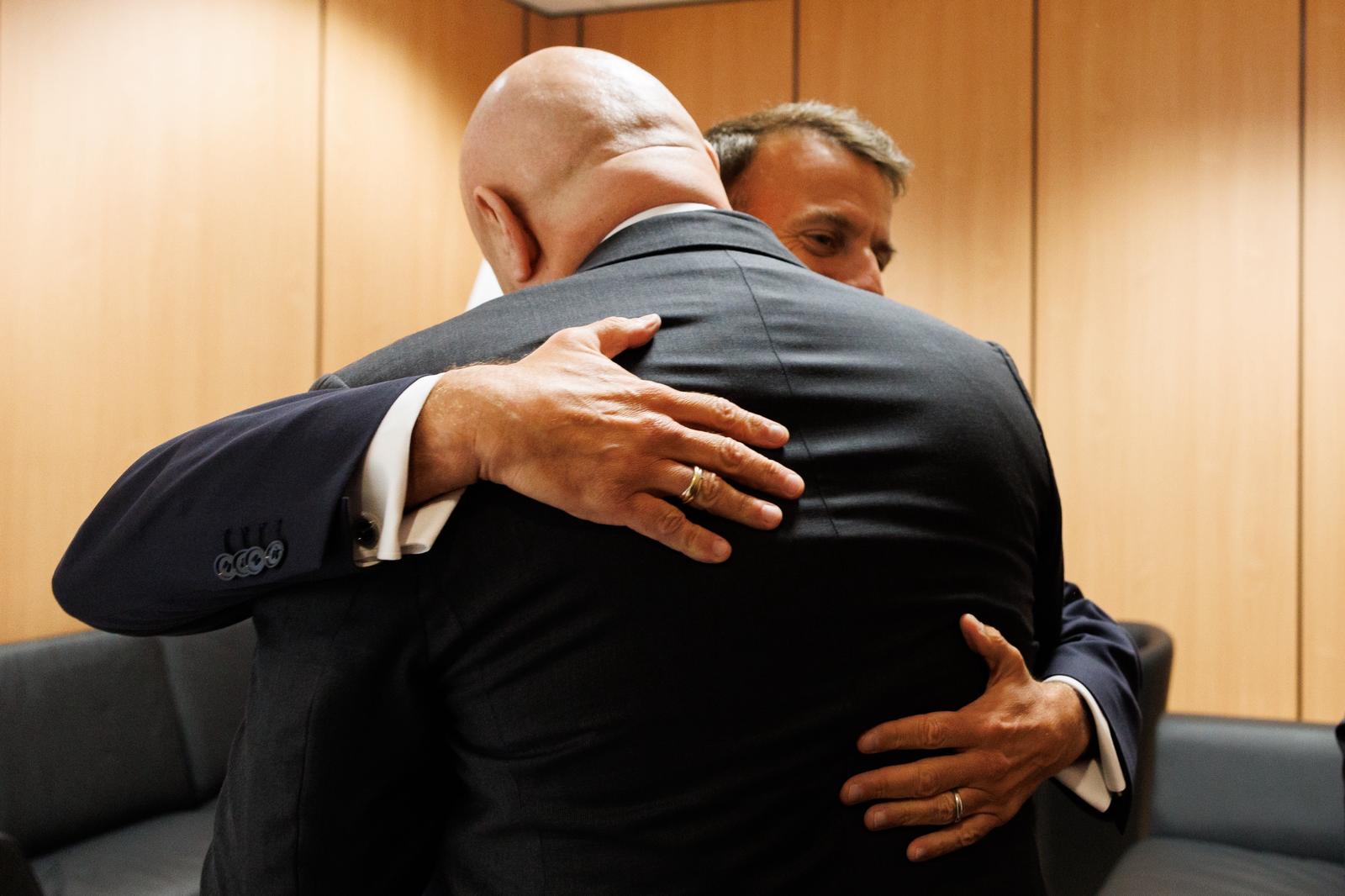 عناق بين الرئيسين عون وماكرون عناق بين الرئيسين عون وماكرون