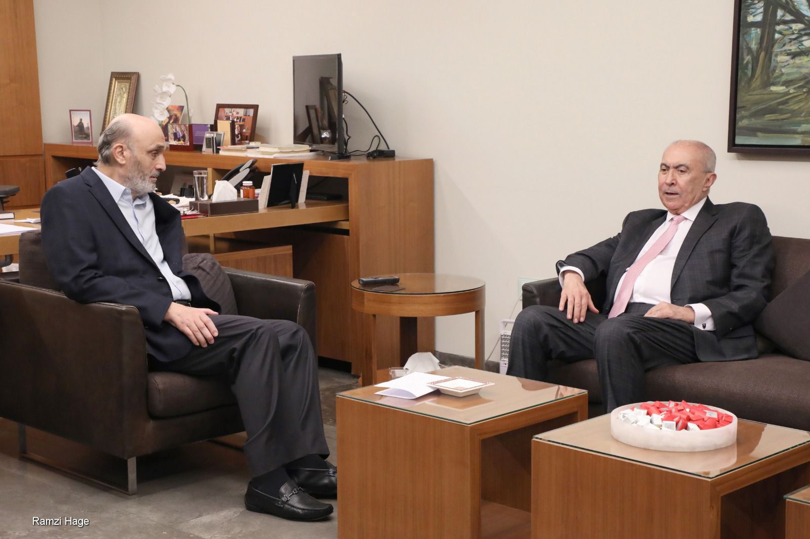 عرض رئيس حزب القوات اللبنانية سمير جعجع في معراب مع النائب فؤاد مخزومي، لآخر التطورات السياسية على الصعيدين المحلي والإقليمي.