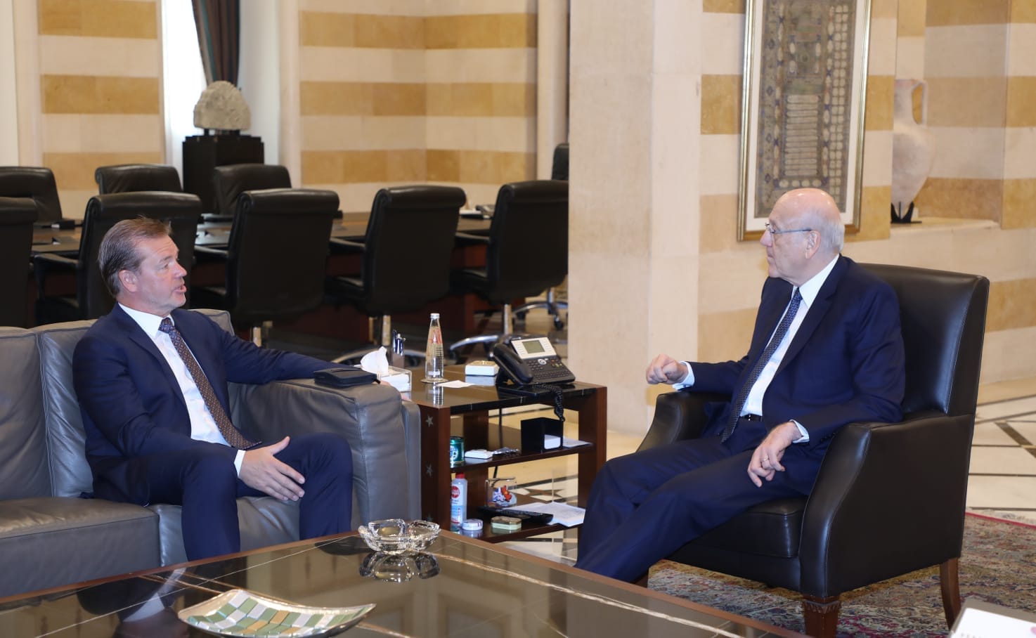 وكان رئيس الحكومة عقد سلسلة لقاءات واجتماعات في السرايا، وفي هذا الإطار استقبل الرئيس ميقاتي سفير سلوفاكيا ماريك فارغا في لبنان في زيارة وداعية.