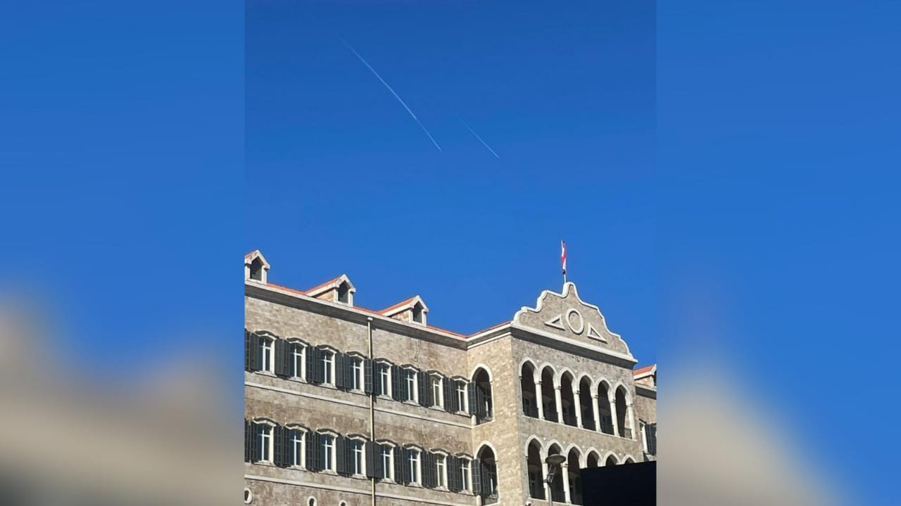 انتشرت صورة تُظهر الطيران الحربي الإٍسرائيلي يُحلّق فوق السراي الحكومي.