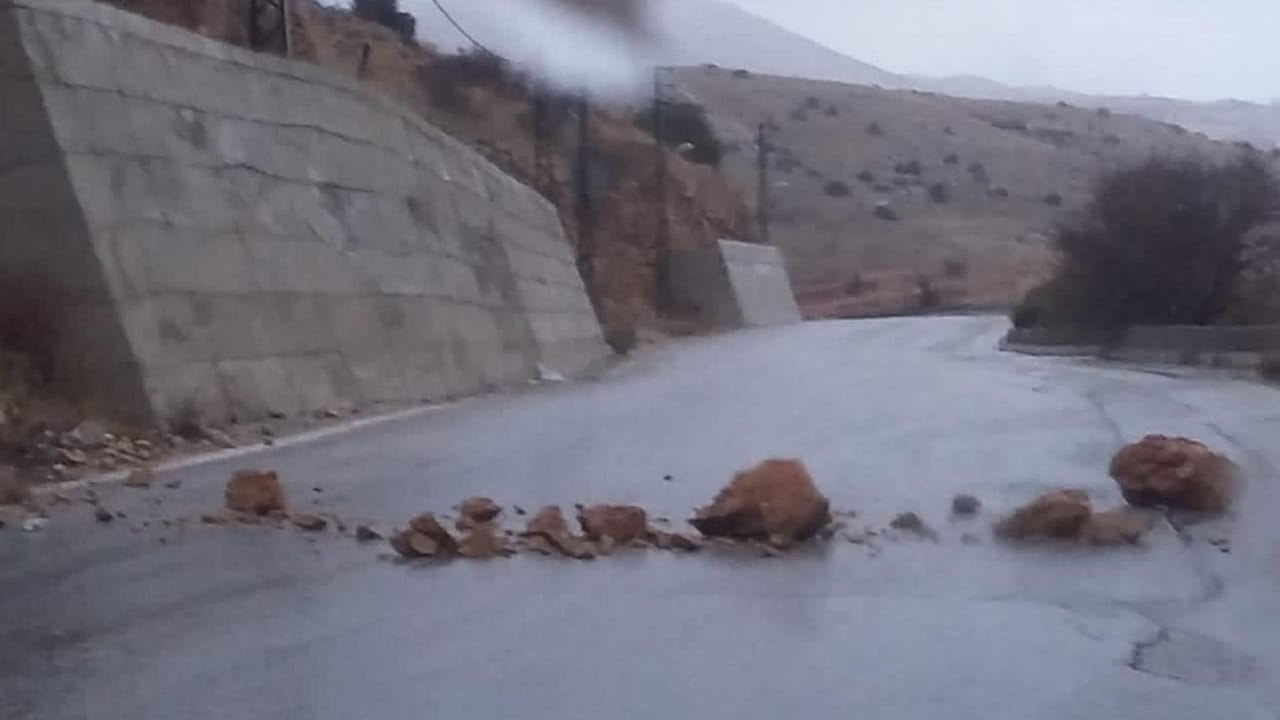 بالصّورة: انهيار الصخور على طريق حزرتا - ترشيش بعد حاجز الدرك