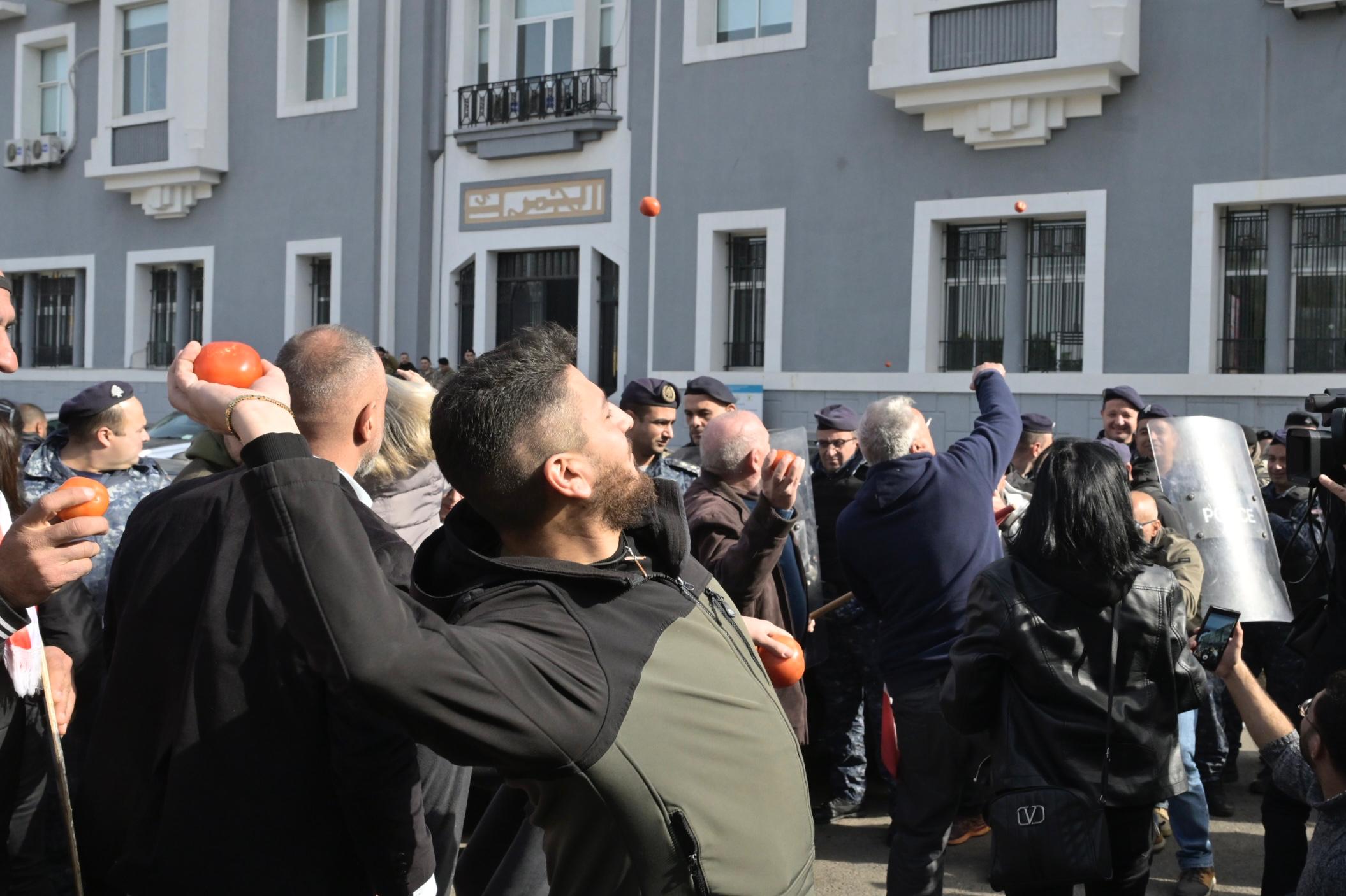 كما عمد المعتصمون إلى رشق مبنى الجمارك بالبندورة.