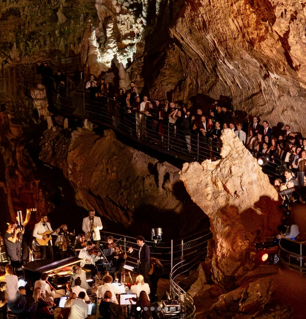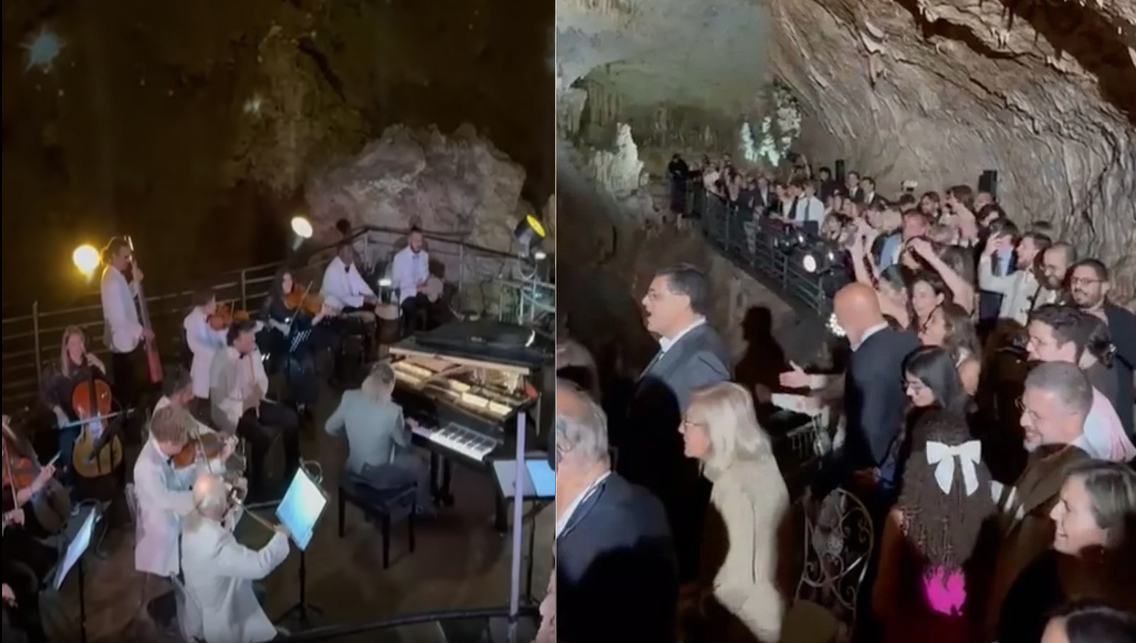 ونشر مشاركون في إحياء وتنظيم الزفاف مقاطع تظهر ضخامة الحفل الذي شاركت في إحيائه أوركسترا تركزت في قمة المغارة بينما جالت مراكب صغيرة بالحضور داخل المغارة المضاءة بالكهرباء والشموع.