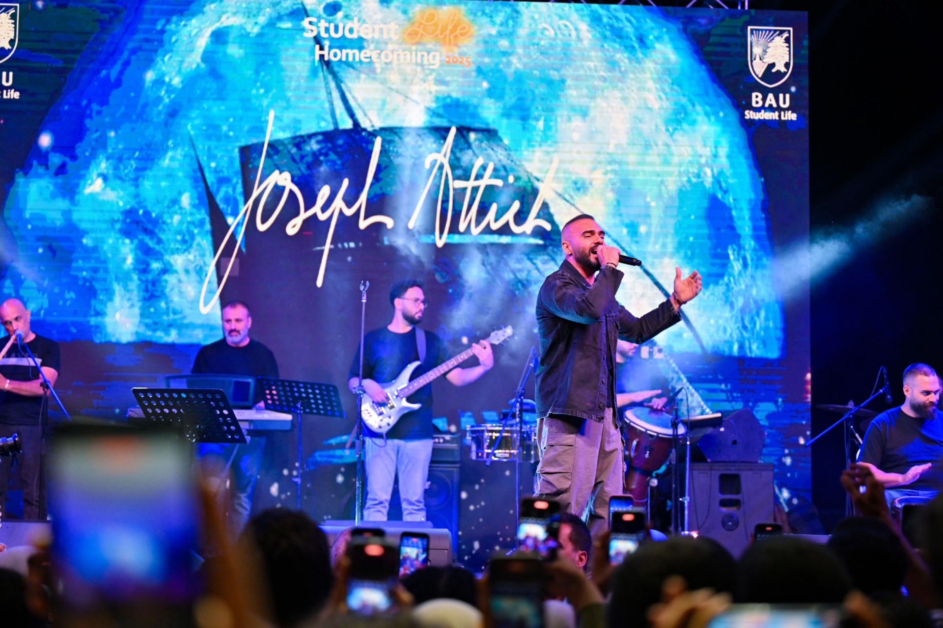 ومن ثمّ تألّق النجم جوزيف عطية في الحفل الختامي، حيث قدّم مجموعة من أجمل أغانيه التي رددها معه الجمهور بحماس كبير، مختتمًا الأمسية بأجواء استثنائية وسط تفاعل جماهيري تخطّى الـ 5000 طالب، ما جعل ختام الـ Homecoming لحظة لا تُنسى في ذاكرة الجامعة.