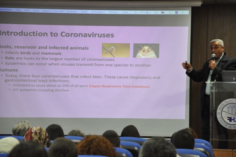 عقدت جامعة رفيق الحريري محاضرة للطلاب والأساتذة والموظفين بغرض توعيتهم والإضاءة على جوانب مرض الكورونا، طبيعته ونشأته وخطورته وسبل الوقاية منه ومنع انتقال العدوى للآخرين. ألقى هذه المحاضرة الأستاذ المحاضر في جامعة رفيق الحريري والمتخصص في علم الجراثيم البروفيسور محمود علي حلبلب في قاعة الميدل إيست .