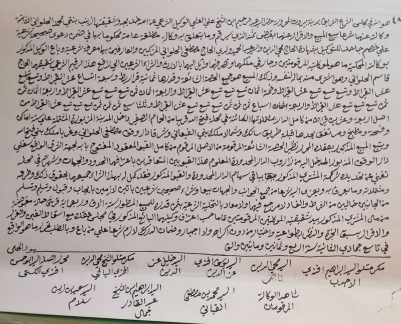 «بما أنه لحد الآن لم يصر حفظ الأصول المؤسسة بتحرير الحجج الشرعية في المحكمة المطهرة بكل ملك يباع ويشرى أو تجري عليه مقاسمة الشركاء كما يقتضي بل قد يشاهد بعض حجج صار تحريرها في الخارج. وحيث عدا عن كون ذلك مغايراً للأصول الشرعية إلا أنه أيضاً هو السبب الأقوى لتشويش دفاتر الأملاك التي من نظامها أن لا تجري بها انتقالات بدون حجج شرعية وكذلك على الأهالي يوجد المحذور أيضاً بالمنازعة والدعاوى بالمستقبل لعدم وجود سند شرعي يضمن ذلك لأنه غني عن البيان أن هكذا أوراق خارجية لا يعتمد عليها قطعاً فلأجل التخلص من هذه الغوايل المحذورة وراحة الحكومة والأهالي، يقتضي كل شار وبائع أو مقاسم أن يحرر حجته في المحكمة المطهرة ثم يحضرها الى دائرة الأملاك لكي تصير الانتقالات بموجبها. وكل من خالف ذلك فعدا أن لا تسمح له دعوى بالمستقبل مطلقاً بموجب ورقته المحررة خارج المحكمة، لا شرعاً ولا نظاماً بل فوق ذلك كل من يظهر أنه مستند على هكذا أوراق تجري بحقه المجازاة قانوناً. ولأجل إجراء التحريرات والتنبيهات اللازمة بهذا الخصوص فبحسب الأمر الكريم المشيري قد صار نشر هذا الإعلان».