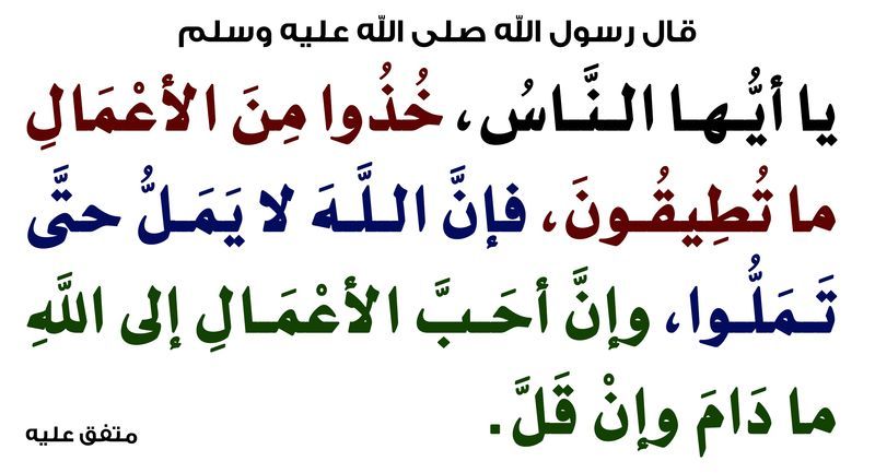 فلذلك يجب علينا الاستمرار في طاعة الله في السرّاء والضرّاء، وفي العسر واليسر، وفي السفر والإقامة، وفي جميع الأحوال، للحديث الشريف (احفظ الله يحفظك، احفظ الله تجده تجاهك).