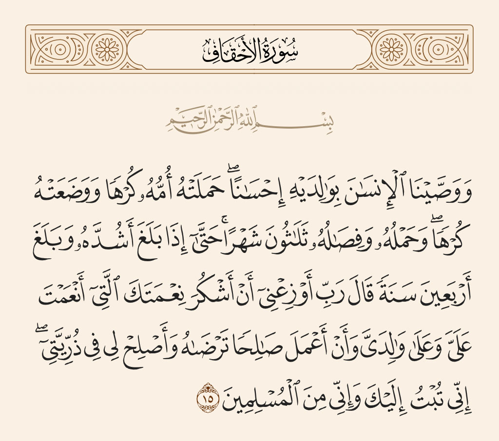 ولقد حثّ الإسلام، هذا الدين الحنيف الصالح لكل زمان ومكان، على برِّ الوالدين، في كتاب الله عزّ وجلّ، وسنّة نبيه، لما لهما من فضل وحقوق على الأبناء، فقال جلّ من قائل سبحانه: {ووصينا الإنسانَ بوالديه حُسْناً}، وقال تعالى: {ووصينا الإنسانَ بوالديه حملته أمُّه وَهْناً على وَهْنٍ وفِصالُه في عامين أنْ اشكُرْ لي ولوالديكَ}، فهي -أي الأم- في تعب وجهد من قبْل الولادة، ثم أثنائها ثم بعدها، وكذلك الأب يسهر لتعب الابن، ويحزن لمرضه، ويقلق ويخاف عليه أثناء غيابه، فاستحقا بذلك البرَّ بهما، فهما -أي الأبوان- ربّيا أطفالهما صغارا، واعتنيا بهما كبارا، فاستحقا بذلك الشكر والبرّ، جزاء ما قدّما وقاما به من حسن التربية والتنشئة، واستحقا البرّ جزاء موفورا، فبرُّ الوالدين واجب وفريضة على الأبناء، وفي برّهما أجر كبير وثواب عظيم، فبرّهما من أفضل الأعمال، وحقّهما هو الحق الثالث بعد حق الله تعالى وحق نبيه.