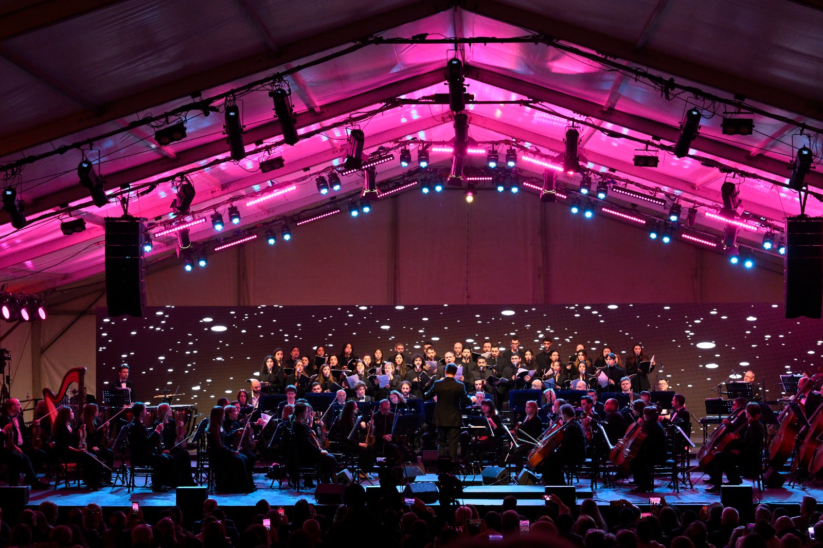 وقد أحيت الاحتفال الاوركسترا الفلهارمونية الوطنية وجوقة جامعة سيدة اللويزة بإدارة الأب خليل رحمة ومشاركة التينور العالمي إيليا فرنسيس، بقيادة المايسترو لبنان بعلبكي، في برنامج موسيقي بعنوان «تآلفات مقدسة واحتفالية: إضاءة روح الميلاد بكل بهائها»، من خلال الموسيقى الميلادية الكلاسيكية والترانيم والألحان الخاصة بالميلاد.