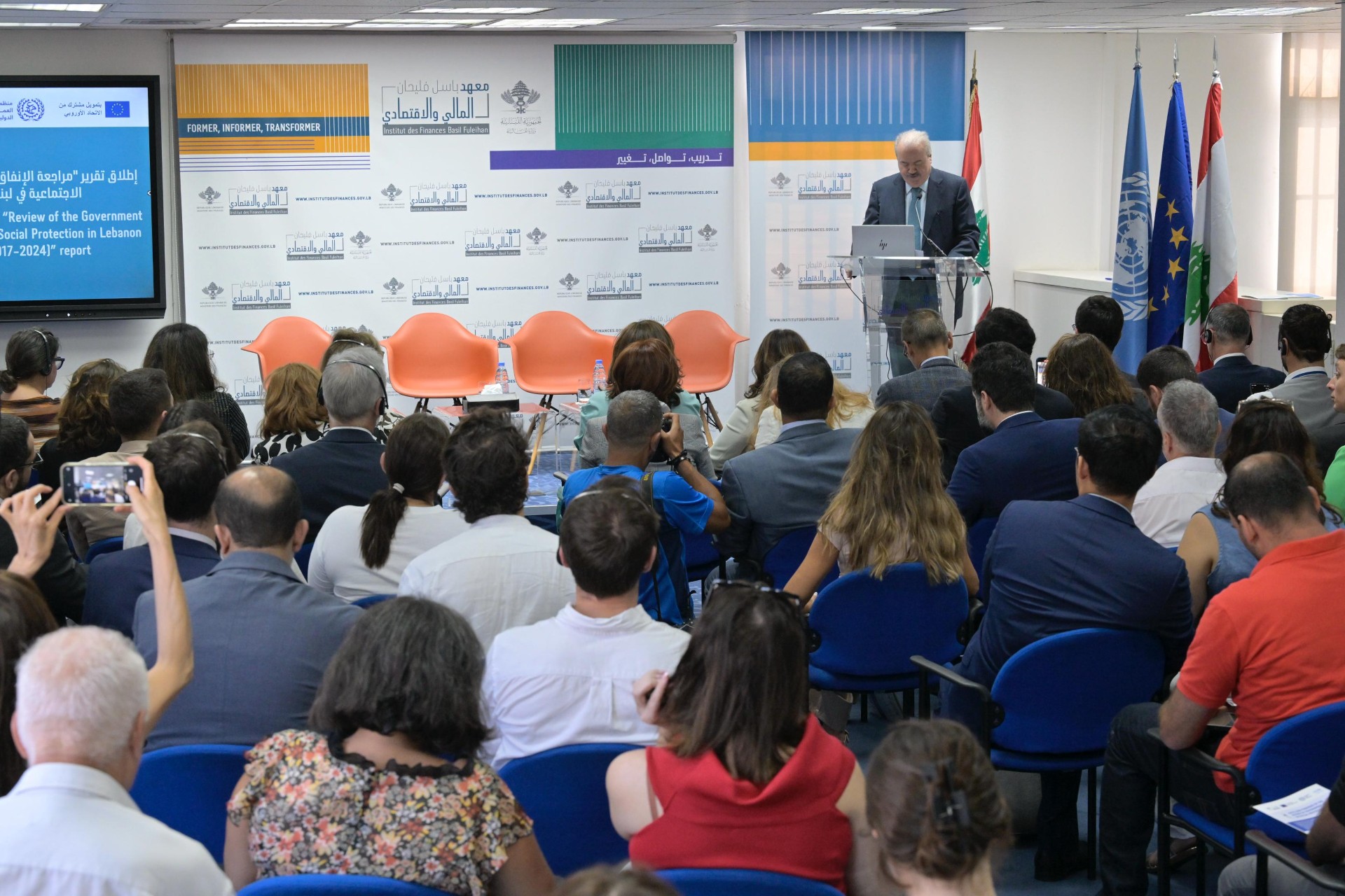 رعى وزير المالية ياسين جابر في مقر معهد باسل فليحان المالي والاقتصادي إطلاق «تقرير مراجعة الإنفاق الحكومي على الحماية الاجتماعية (2017–2024)»، وهو ثمرة جهد مشترك بقيادة معهد باسل فليحان المالي والاقتصادي، بدعم فني من منظمة العمل الدولية واليونيسف وبتمويل مشترك من الاتحاد الأوروبي، وأكّد جابر خلال اللقاء أن «أولوية الحكومة في هذا المجال «حماية شبكات الأمان الاجتماعي وتوسيعها والفئات الأكثر هشاشة، وخصوصا المتضررين من النزاعات» و«إصلاح الخدمة المدنية ونظام التقاعد»، في حين كشفت وزيرة الشؤون الاجتماعية حنين السيد أنها طلبت»زيادة مخصصات المساعدات الاجتماعية من 4 في المئة إلى 30 في المئة من إجمالي موازنة الوزارة».