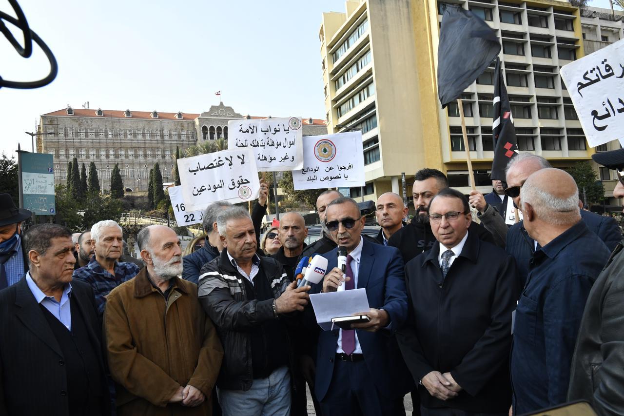 نفذت جمعية المودعين اعتصاما في ساحة رياض الصلح، احتجاجا على «إقرار قانون لادستوري من قبل الحكومة لشطب 80 بالمئة من الودائع»، بمشاركة وزير المهجرين في حكومة تصريف الاعمال عصام شرف الدين.