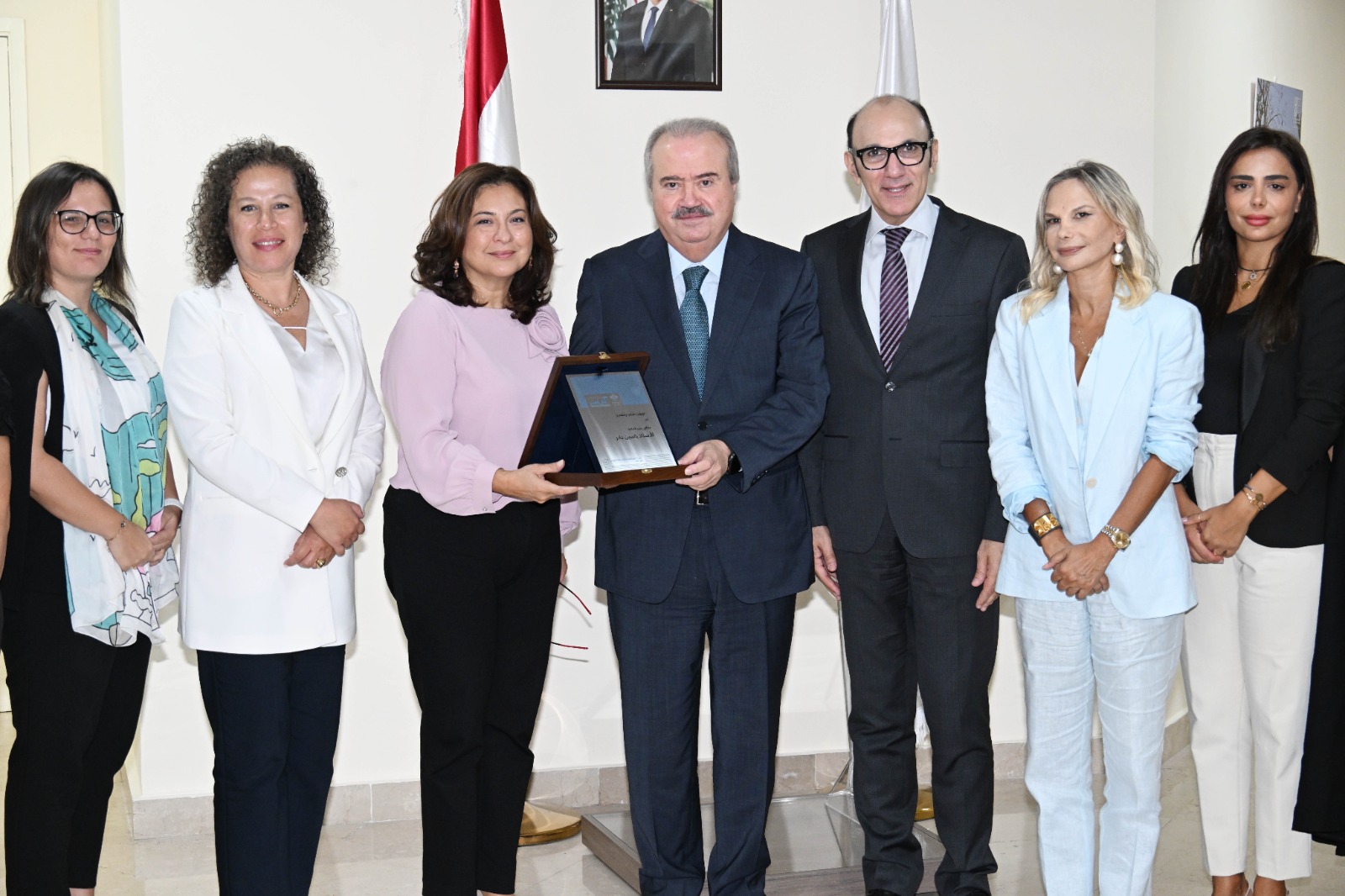 أما رئيسة المعهد لميا مبيض فقدمت بدورها مع فريق المعهد درعاً تقديراً للوزير جابر شاكرة له كل ما يقدمه من دعم للمعهد من أجل استمراريته، معربة عن استعداد المعهد لتقديم كل ما بوسعه تقديمه في خدمة الادارة وتنميتها.