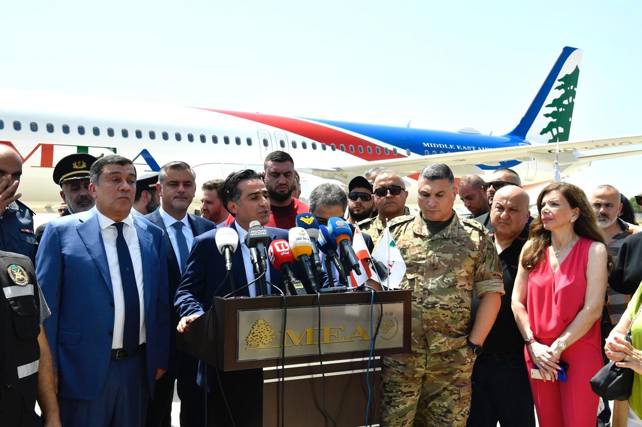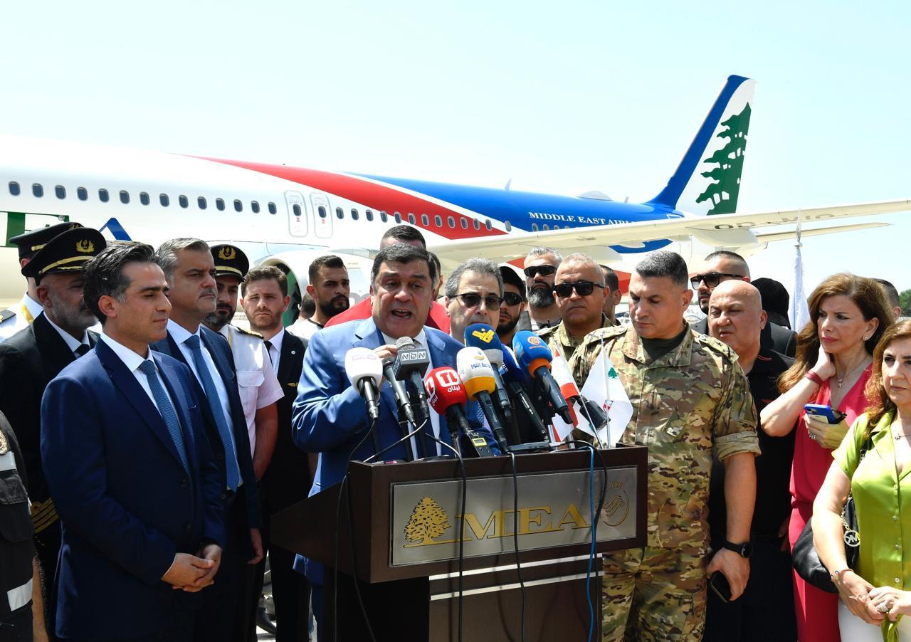 نتوجه بالشكر لمعالي وزير الأشغال العامة والنقل لرعايته وحضوره لهذا الإستقبال اليوم للطائرة من طراز A321 neo التي وصلت من هامبورغ من معامل شركة ايرباص في المانيا الى بيروت، وبالحقيقة لم يكن في ترتيباتنا اجراء اي استقبال رسمي او احتفال لهذه الطائرة بسبب الأوضاع التي يعيشها أهلنا في غزه وفلسطين وفي جنوب لبنان الحبيب، ولكن وبرغبة من معالي الوزير حميه وقوله ان جنوبنا الحبيب الصامد يتلقى اعتداءات العدو الإسرائيلي الإجرامية الغير مسبوقة، ولأن اهلنا في غزه يرتكب بحقهم مجازر غير مسبوقه في العالم ولأن اهلنا في فلسطين يتعذبون وهم مظلومين، ولذلك يجب ان نظهر للجميع اننا ورغم كل ذلك ، صامدين ومستمرين وقادرين على الاستمرار في خطط النمو والتطور في هذه الشركة.
