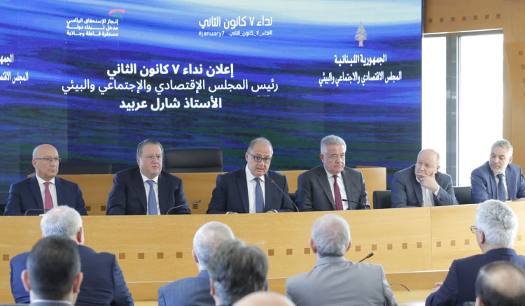 إثر اللقاء، أطلق المجتمعون نداء بعنوان: «نداء ٧ كانون الثاني، إنجاز الإستحقاق الرئاسي، مدخل لبناء دولة مستقرة فاعلة وجاذبة»، جاء فيه: «في زمن يقف فيه الوطن في عين العواصف والمحن، يبقى لبنان عصيا على الموت، شعلة تتقد في عتمة الأزمات، وجسرا معلقا بين حلم النهوض وكابوس الانهيار. إنه وطن يرفض أن يكون شاهدا على سقوط نفسه، ويصر على صناعة مصيره بيديه، لا أن يكتب عليه كقدر لا مفر منه. في ظل التحولات التي تجتاح الجوار، وبالرغم من الألم من جراء العدوان، لا يزال لبنان واقفا، لأن جذوره ضاربة في أعماق الأرض، ولأن أبناءه مؤمنون به ومتمسكون بديمومته.إن الاستقرار ليس هبة من الخارج، بل هو حصن تتعالى جدرانه كلما اجتمع اللبنانيون تحت راية الوحدة والعزم على صون الوطن. لكن الجمود قاتل والفراغ حفرة تبتلع كل أمل. فمتى تعطلت المؤسسات الدستورية وسكت صوت الإنتاج وانطفأت شعلة العمل، حل الخراب، وأغلقت أبواب المستقبل. ليس من سياسة تبنى على المماطلة والانتظار، ولا من اقتصاد يزدهر على أطلال المؤسسات المنهارة. إن الاقتصاد قلب الدولة النابض، فإن توقف، ماتت الأحلام في مهدها، وهربت الطاقات إلى حيث لا عودة. لذلك، لا بد أن تكون السياسة لمصلحة الناس لا أداة لصراع اهل السياسة، وأن تكون السلطة في خدمة الناس، لا عبئا عليهم. لبنان ليس حقيبة تحمل إلى موائد المفاوضات، ولا ورقة في دفاتر الأمم، بل هو وطن ولد من رحم التضحيات ليبقى حرا عزيزا كريما.