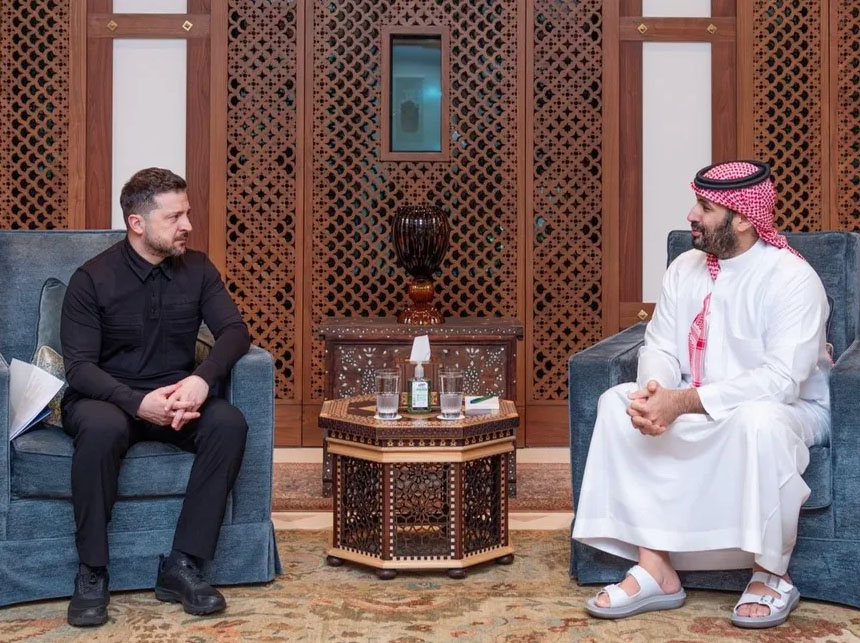 بحث الأمير محمد بن سلمان، ولي العهد السعودي، رئيس مجلس الوزراء، في جدة امس، مع فولوديمير زيلنسكي رئيس أوكرانيا، العلاقات الثنائية.