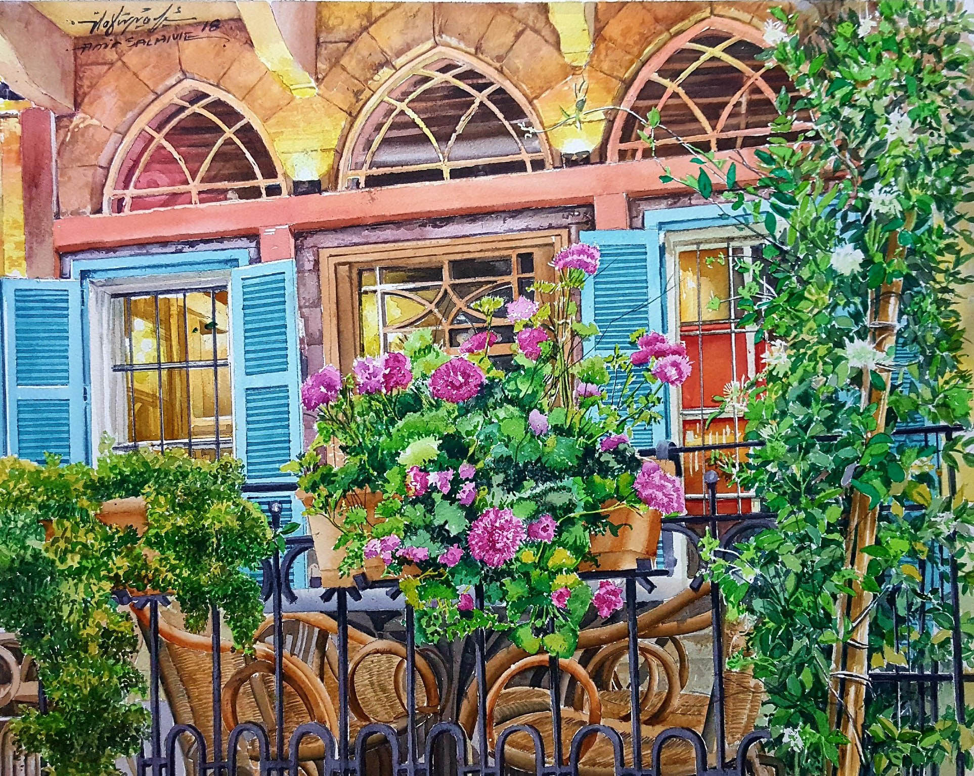 في بيوت بيروت الحجرية، كانت الشرفة نافذةً للحياة اليومية، تفتحها العائلة صباحاً لتستقبل البحر والضوء، وتجلس عندها مساءً تستمع إلى أخبار الجيران وصوت المؤذن. كانت الهواء الذي يتنفّسه البيت، والعين التي تطلّ على المدينة وتشاركها نبضها. ومنها تُروى القصص، وتُنسج العلاقات، وتُبنى صورة المدينة التي لا تعرف الانعزال، وتُلهم قريحة الشعراء والأدباء. فمن شرفات الفنادق القديمة في منطقة ميناء الحصن كتب الرحّالة في مدوناتهم مشاهداتهم في وصف موقع وطبيعة بيروت الخلّاب، ومن شرفات الفنادق القديمة المحاذية لأسواق المدينة، وصفوا عادات وتقاليد وأزياء المارة وسلوكيات التجّار. كتب الروائي الفرنسي ادوار بلونديل سنة 1838: « هذا هو المكان الأكثر حيوية في المدينة، الذي يذكّرك بالفانوس السحري حيث يتغيّر المشهد طوال الوقت. لا يمكن للمرء أن يجد وجهة نظر أفضل لدراسة الأنواع المادية والأزياء المتنوعة للبلاد. الكهنة والدراويش والبدو من الصحراء والفلاحون من جبل لبنان والدروز والمصريون والنساء السود والعبيد على اختلاف أنواعهم، كلهم يأتون ويذهبون، يزدحمون ويتدافعون من كل اتجاه... المحلات التجارية الوحيدة ذات الأهمية هي متاجر تجار الحرير الذين يبيعون السلع المحلية».