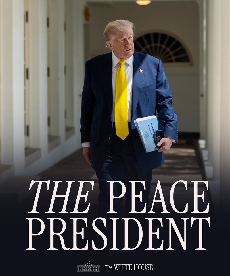 ففي تغريدة على حسابه في إكس نشر البيت الأبيض صورة لترامب، كتب عليها "رئيس السلام"، في إشارة إلى نجاحه في وقف الحرب.