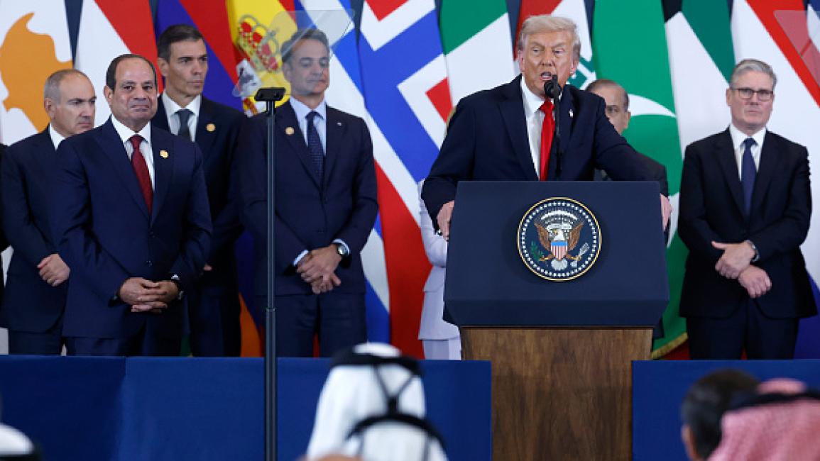 ترامب متحدثا وبجانبه السيسي خلال المؤتمر الصحفي عقب انتهاء قمة شرم الشيخ ترامب متحدثا وبجانبه السيسي خلال المؤتمر الصحفي عقب انتهاء قمة شرم الشيخ