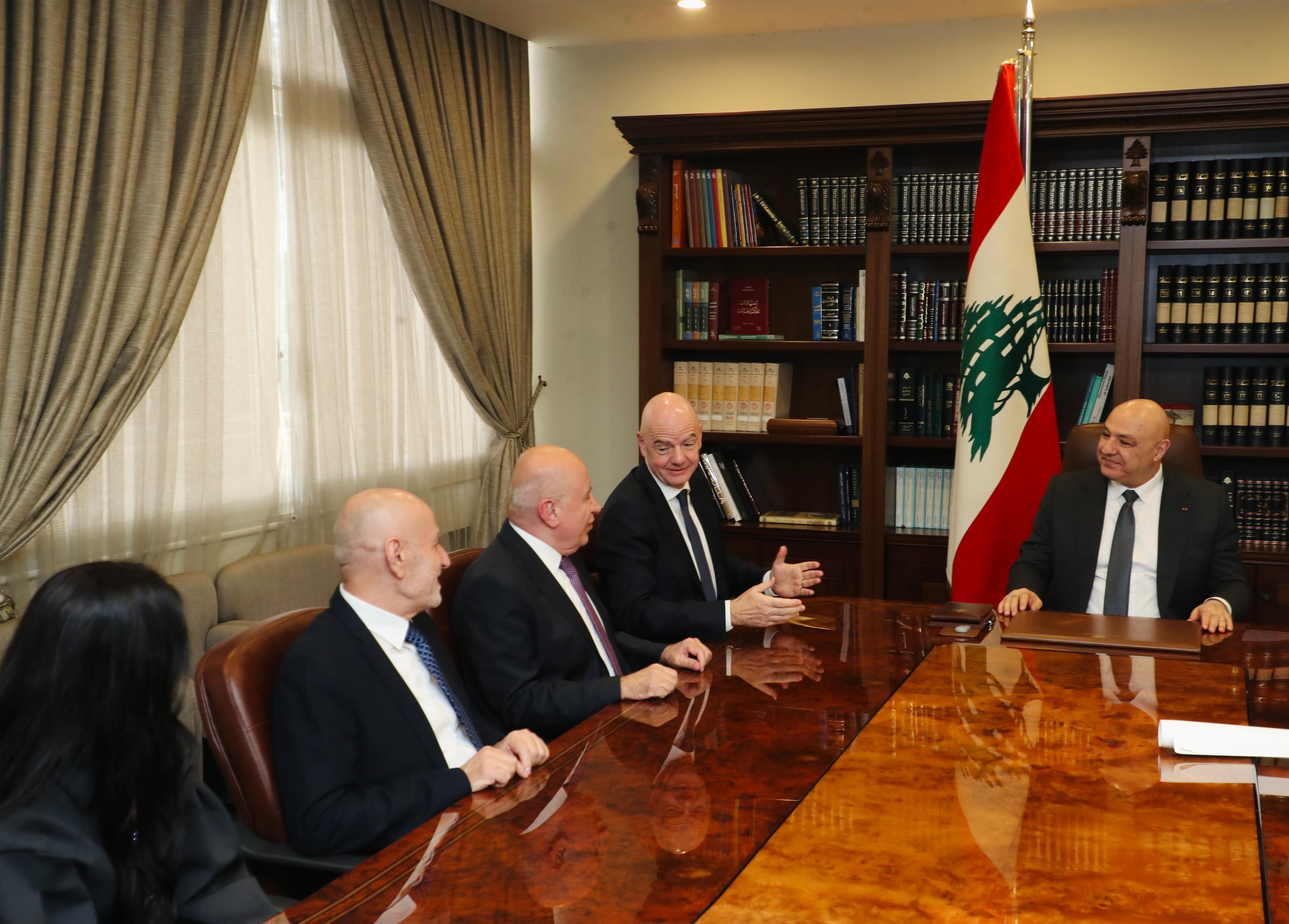 اجتمع اليوم رئيس الاتحاد الدولي لكرة القدم (فيفا) جياني إنفانتينو مع رئيس الجمهورية اللبنانية جوزاف عون، بحضور زوجته لينا الأشقر، رئيس الاتحاد اللبناني لكرة القدم نائب رئيس الاتحاد الاسيوي المهندس هاشم حيدر، والأمين العام جهاد الشحف.