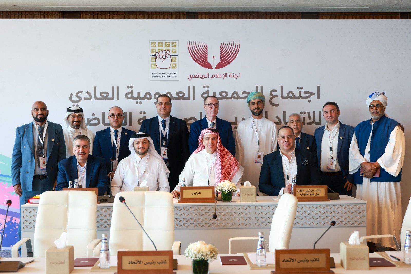 وجاء انتخاب الدكتور العواد خلال الإجتماع الذي شهد مشاركة عربية واسعة من الاتحادات والجمعيات والروابط واللجان الذين يمثلون 18 دولة عربية، كما تم انتخاب النائب الأول لرئيس الاتحاد عن قارة آسيا وفاز به علي عيسى (قطر) والنائب الأول لرئيس الاتحاد عن قارة إفريقيا وفاز به حسن خلف الله (مصر)، كما جرت إنتخابات أعضاء المكتب التنفيذي التي فاز بها الزميل رشيد نصار رئيس جمعية الاعلاميين الرياضيين اللبنانيين، الدكتور ولد الحسن (موريتانيا)، الدكتور هادي عبد الله (العراق)، عيسى شريدة (البحرين)، بدر الدين الإدريسي (المغرب)، ياسر عائس (السودان)، مازن الريس (سوريا)، عادل البلوشي (سلطنة عمان)، وتم إعتماد ممثل فلسطين بالمقعد الدائم منتصر ادكيدك.
