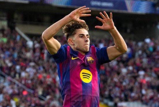 سجل فيرمين لوبيز ثلاثية "هاتريك" في الدقائق 7 و39 و76، وماركوس راشفورد هدفين في الدقيقتين 74 و79، ولامين يامال هدفاً من ركلة جزاء في الدقيقة 68 اما هدف أولمبياكوس فسجله المغربي أيوب الكعبي من ركلة جزاء في الدقيقة 53.