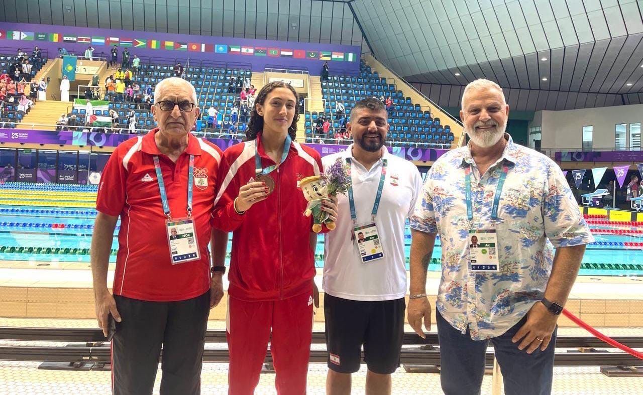 وواكب السباحة لين الحاج خلال المنافسات وفي إحتفال التتويج نائب رئيس اللجنة الأولمبية اللبنانية (رئيس البعثة) الغراند ماستر سامي قبلاوي والأمين العام للجنة عضو المكتب التنفيذي لإتحاد اللجان الأولمبية الوطنية العربية العميد المتقاعد حسان رستم والمدرب فرنسوا غطاس حيث قدموا التهاني والمباركة للبطلة لين الحاج وعبروا لها عن أعظم مشاعر الفخر والإعتزاز.