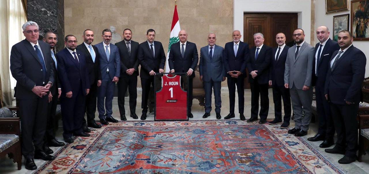 اكد رئيس الجمهورية العماد جوزاف عون، لوفد الاتحاد اللبناني لكرة السلة: «انتصاراتكم جعلت من حضور لبنان على الساحة العالمية مصدر فخر، وأنا ملتزم بدعمكم من أجل رفع مستوى الرياضة وحمايتها».