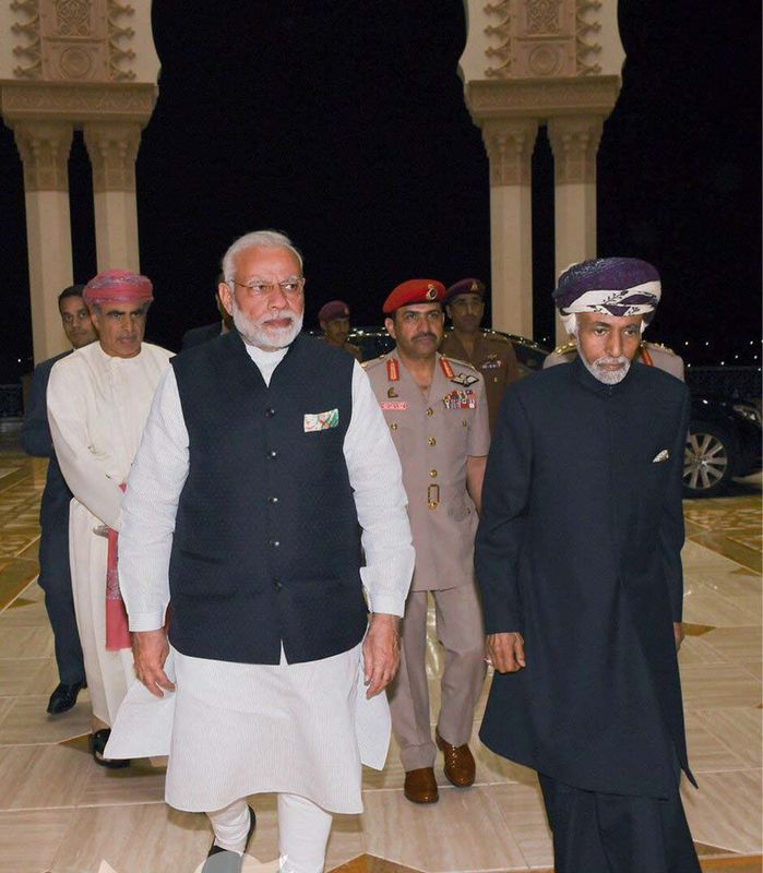 استقبل السلطان قابوس بن سعيد ببيت البركة مساء أمس ناريندرا مودي رئيس وزراء الهند حيث جرى بحث العديد من أوجه التعاون القائم بين البلدين وسبل دعم وتعزيز العلاقات الطيبة بينهما بما يحقق المزيد من المصالح المشتركة للشعبين العماني والهندي الصديقين.