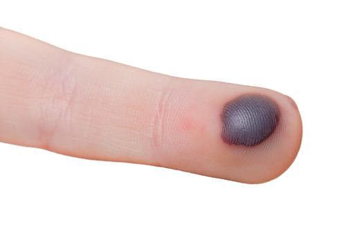 تظهر بثور الدم في أي منطقة من الجسم تعرضت للضرب دون أن يتمزق الجلد.