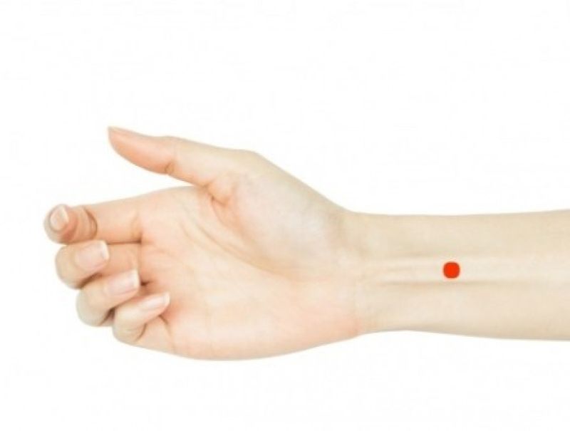 توجد نقطة (PC 6) في الجزء الداخلي من الساعد، وللوصول إليها حدد الإصبع