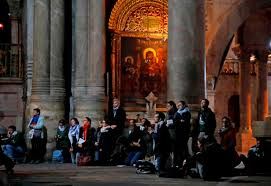 هرع مئات الحجاج إلى كنيسة القيامة عند إعادة فتح أبوابها صباح أمس الباكر، وسجدوا على ركبهم وهم يؤدون الصلاة وسط النحيب والدموع، بسبب إغلاقها غير المسبوق الذي استمر 3 أيام.