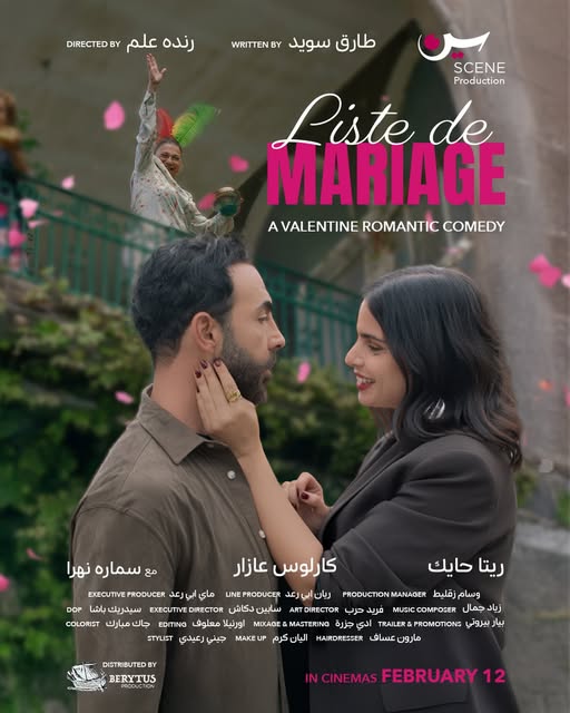 في 12 من شباط/ فبراير الجاري ستستقبل عدة صالات لبنانية الشريط الجديد: Liste de marriage للمخرجة رندة علم عن سيناريو لـ طارق سويد، إنتاج scene production تتولى مي أبي رعد مهمة المنتج التنفيذي.