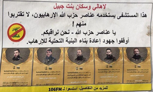 ومساء أمس ، زعم الجيش الاسرائيلي أن مستشفى الشهيد صلاح غندور في بنت جبيل فيه وحدة عسكرية وجاء في بيان لأهالي وسكان بنت جبيل: هذا المستشفى يستخد مع عناصر حزب الله «الإرهابيون» لا تقتربوا منهم!