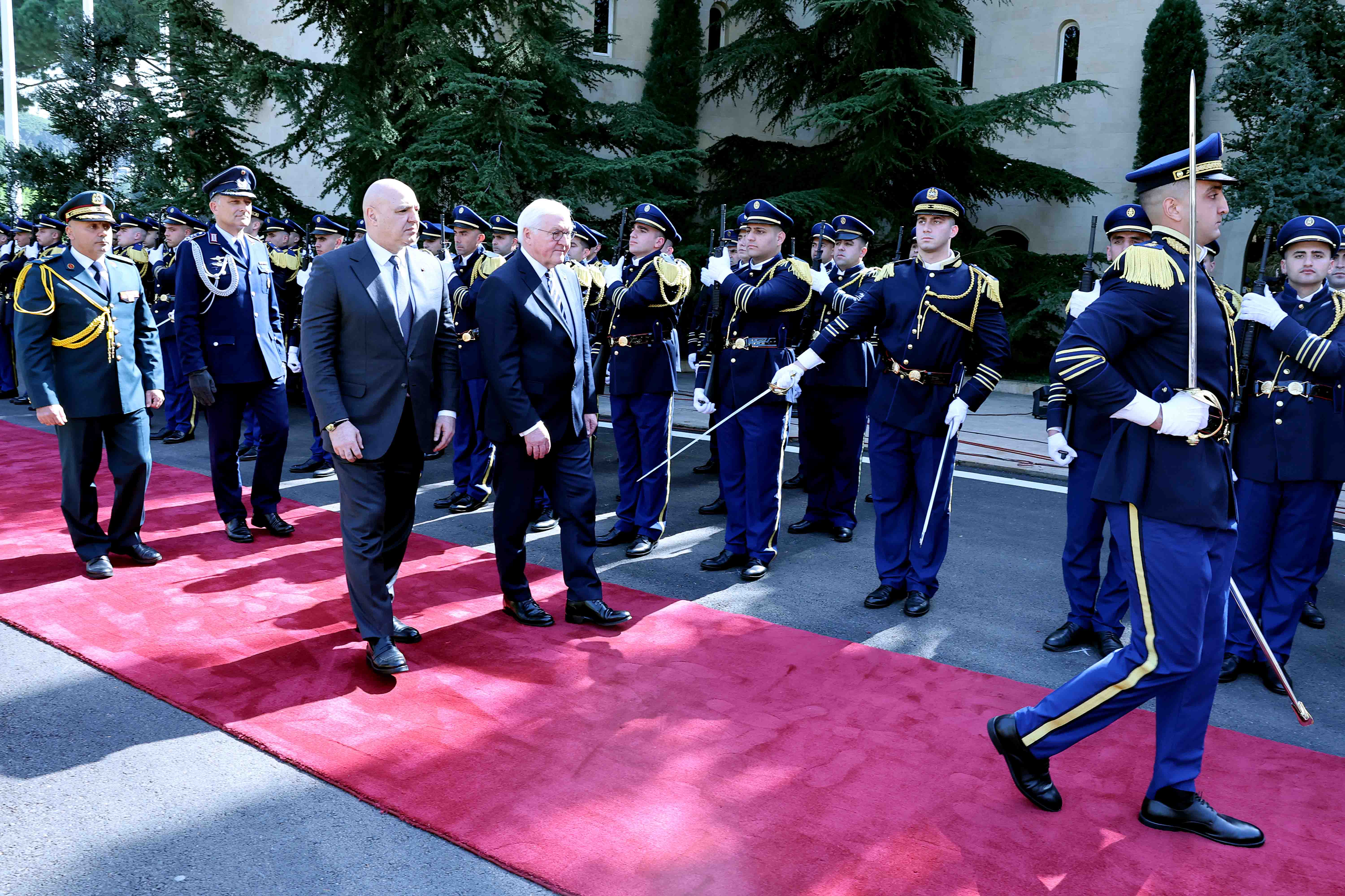 وكان الرئيس شتاينماير وزوجته السيدة الكه بودنبندر وصلا الى قصر بعبدا ، حيث استقبلهما الرئيس عون واللبنانية الأولى السيدة نعمت عون امام العلم في الباحة الخارجية، واقيمت لهما مراسم الاستقبال الرسمي.