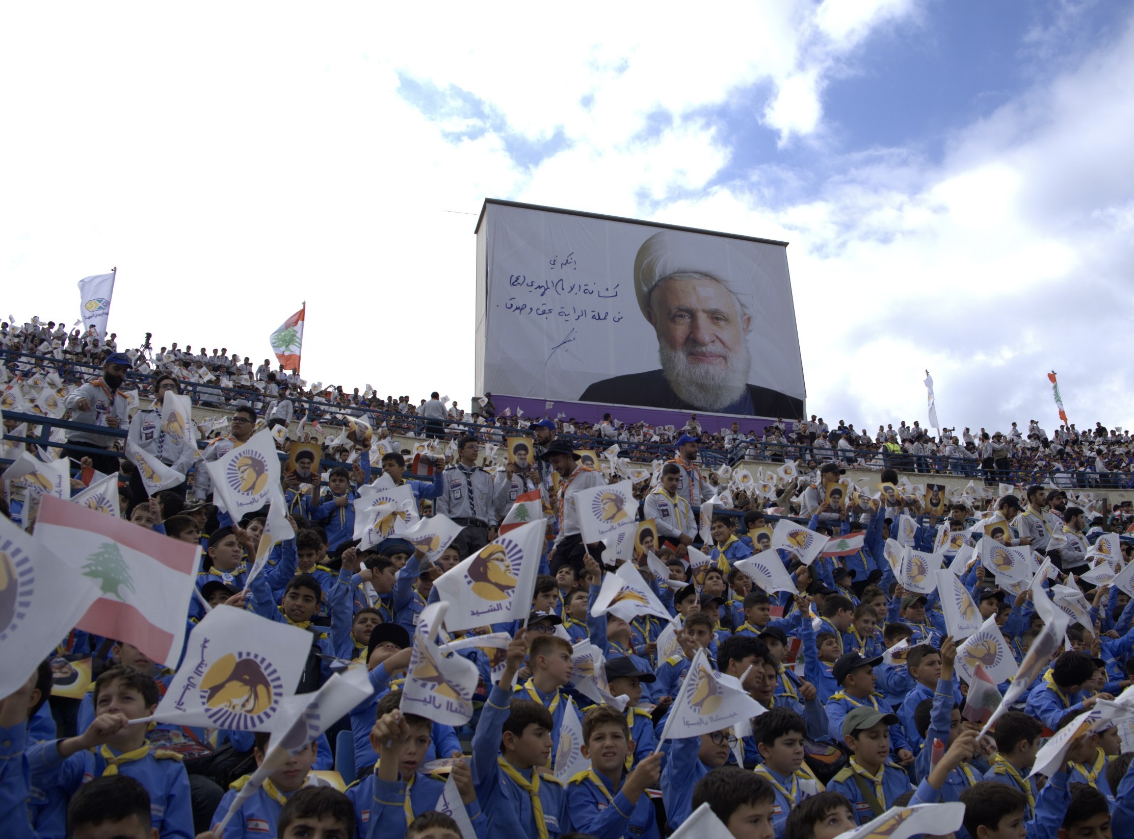 شهدت المدينة الرياضية في بيروت صباح اليوم، حدثًا استثنائيًا تمثل في تنظيم أكبر تجمّع كشفي تحت عنوان "أجيال السيد"، والذي أقيم تخليدًا لذكرى استشهاد سيد شهداء الأمة السيد حسن نصر الله (رض) ورفيقه السيد هاشم صفي الدين (رض)، وذلك بالتزامن مع الاحتفال بالعيد الأربعين لتأسيس جمعية كشافة الإمام المهدي (عج)، تحت شعار "إنا على العهد يا نصر الله".