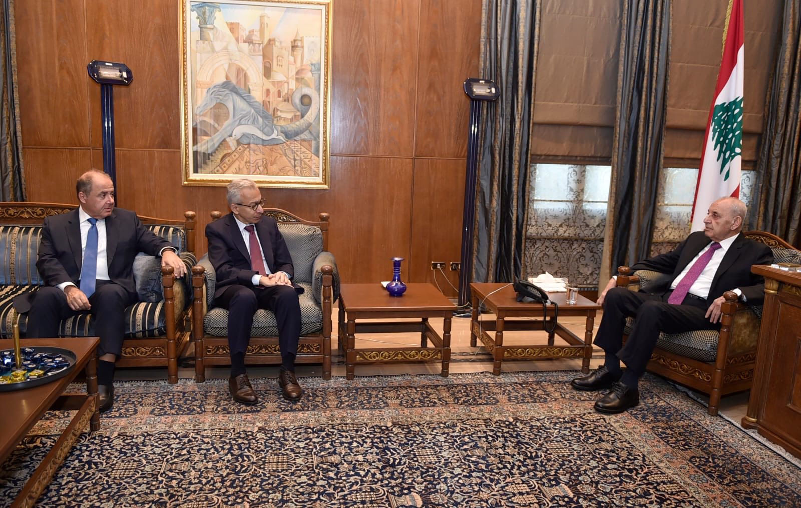 استقبل دولة رئيس مجلس النواب نبيه بري في مقر الرئاسة الثانية في عين التينة، وزير الاقتصاد والتجارة عامر البساط ورئيس المجلس الاقتصادي والاجتماعي والبيئي شارل عربيد، الزيارة كانت مناسبة لوضع رئيس المجلس النيابي بأجواء التحضيرات لمؤتمر «بيروت 1» المزمع عقده في ١٨ و١٩ من الشهر الجاري، كما البحث في تطورات الأوضاع العامة لا سيما الاقتصادية منها.