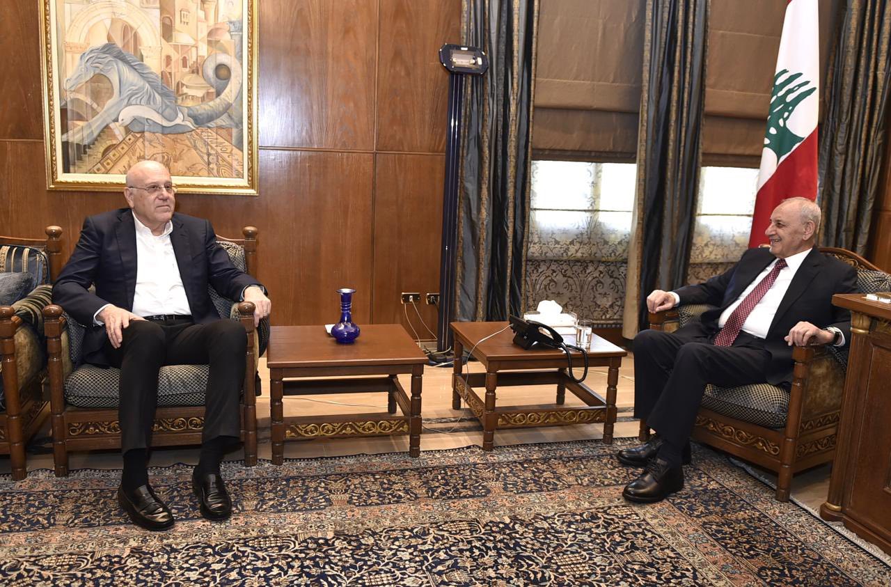 عرض رئيس مجلس النواب نبيه بري في مقر الرئاسة الثانية في عين التينة مع رئيس الحكومة السابق نجيب ميقاتي تطورات الأوضاع العامة في لبنان والمنطقة والمستجدات السياسية.
