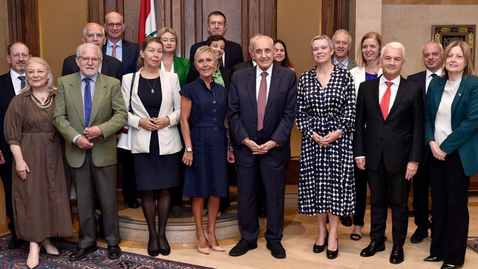 استقبل رئيس مجلس النواب نبيه برّي في مقر الرئاسة الثانية في عين التينة سفراء دول الإتحاد الأوروبي بحضور سفيرة الإتحاد الأوروبي لدى لبنان ساندرا دو وال والمستشار الإعلامي لرئيس المجلس علي حمدان، حيث تناول اللقاء تطورات الأوضاع في لبنان والمنطقة والمستجدات السياسية والميدانية في ضوء عدم إلتزام إسرائيل بالقرار الأممي ١٧٠١ وقرار وقف إطلاق النار وإنتهاكاتها اليومية للسيادة اللبنانية، إضافة للعلاقات الثنائية بين لبنان والإتحاد الاوروبي .