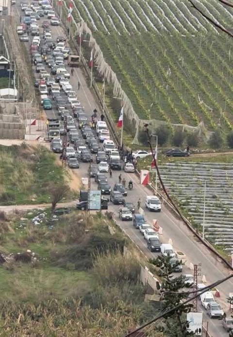 مع ساعات الفجر الاولى، بدأ تدفق اهالي البلدات الحدودية الذين اتخذوا نقاط تجمع محورية في صف الهوا نحو بنت جبيل ومحيطها، وعند بركة شقراء نحو حولا وميس الجبل والجوار، وعند جسر قاعقعية الجسر نحو الطيبة والعديسة، وعلى مفرق مجدل سلم نحو مركبا، وعند نبع الحمام نحو الخيام والجوار، ولم تمنعهم السواتر الترابية التي رفعها جيش العدو الاسرائيلي طوال يوم السبت عند مفارق الطرق ووسط الشوارع العامة لمنع حركة الناس، بل كانت المواكب السيارة تتدفق بزخم تحمل رايات المقاومة والاعلام اللبنانية واعلام حزب الله وحركة امل، ويبث الكثير منها الاناشيد الحماسية.