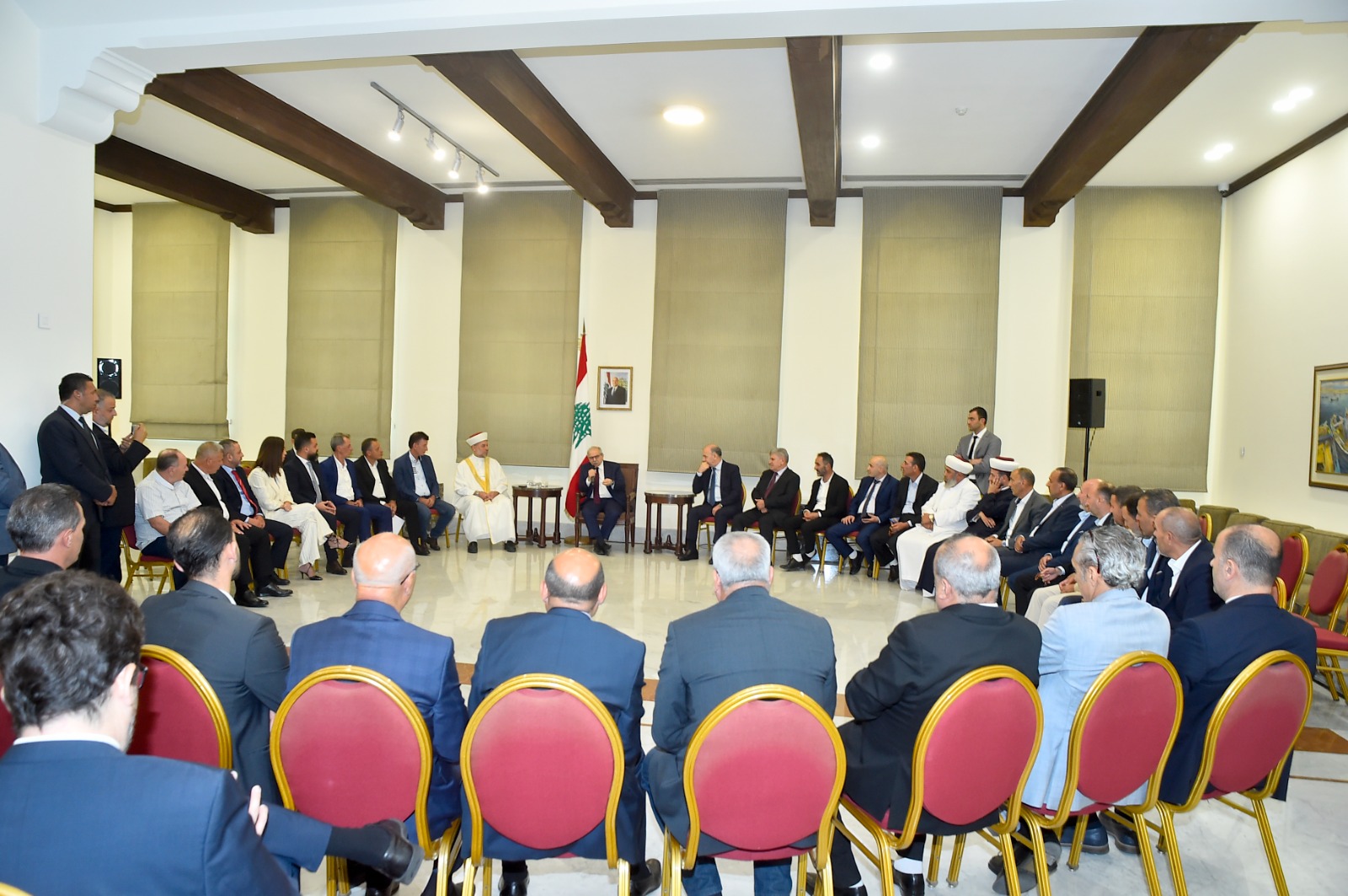 جئنا أيضاً لنؤكد دعمنا الكامل للقرارات التي اتخذتها الحكومة في جلستي 5 و7 آب في مجلس الوزراء، وكذلك دعمنا للجلسة المرتقبة يوم الجمعة المقبل، التي ستكون مفصلية في ما يتعلق بملف السلاح، وهو اليوم الملف الأهم في البلد. وقد شدّدنا على أنّه من الضروري أن يحظى هذا الملف بأوسع دعم سياسي وإجماع وطني، للرئيس سلام والحكومة، وكذلك لرئيس الجمهورية العماد جوزاف عون، باعتباره ملفاً أساسياً.