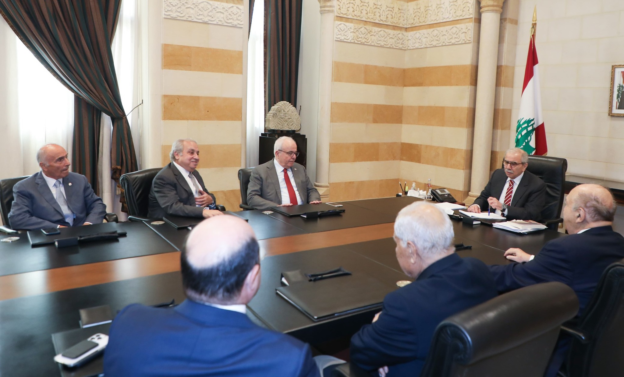 واستقبل الرئيس سلام وفدا من رؤساء بلديات ومخاتير وفعاليات سهل عكار برئاسة القاضي خلدون عريمط الذي قال بعد اللقاء: «زيارتنا تأتي لهدفين وطنيَّين اثنين: اولا: لدعم دولة رئيس الحكومة القاضي الدكتور نواف سلام على مواقفه الوطنية وقراراته الشجاعة الهادفة لحصر السلاح بيد الدولة اللبنانية وحدها؛ ومنع سيطرة الدويلة على الدولة ؛وعمله الدائم لبسط سيادة الدولة وحدها على ارضها, بحيث لا سلاح الا سلاح الدولة, ولا مكان لدويلة مذهبية او طائفية داخل الدولة اللبنانية ومؤسساتها الدستورية, ورفضه لتجاوز القانون والدستور من بعض القوى السياسية التي تمارس العمل العسكري والامني في العاصمة بيروت وبعض المناطق اللبنانية؛ وعلى وجه الخصوص ما قام به البعض ولا سيما حزب الله من اجتياح سياسي وامني لمنطقة الروشة بذرائع واهية؛ واستنكارنا بنفس الوقت للحملة المشبوهة التي يتعرض لها الرئيس سلام بهدف اعاقة نهوض الدولة القوية بمؤسساتها الدستورية المتعاونة مع الاشقاء العرب والبعيدة عن المحاور الاقليمية والدولية.