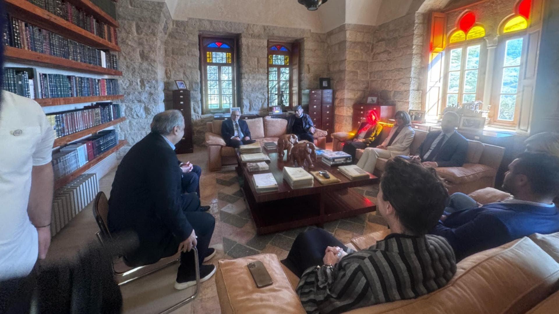 وبعد قراءة الفاتحة على الضريح ووضع الورود توجه سلام وجنبلاط إلى مكتبة قصر المختارة حيث عقد لقاء بالمناسبة.