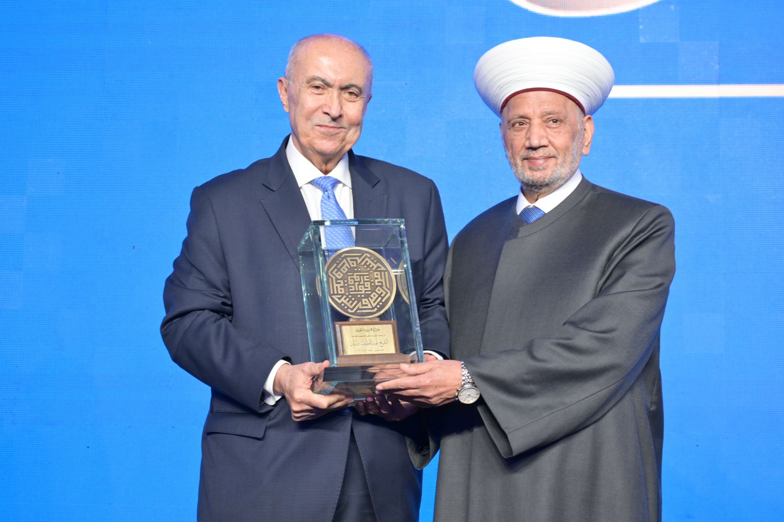 وقدّم النائب مخزومي للمفتي دريان درعا تكريما عربون محبة وتقدير.